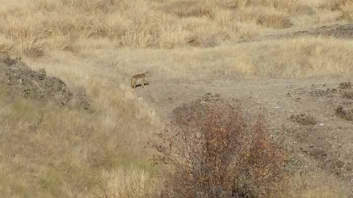 Just over our left side we saw a coyote running off and a deer standing in a nearby pond below us shivering. I think we interrupted the coyotes dinner….